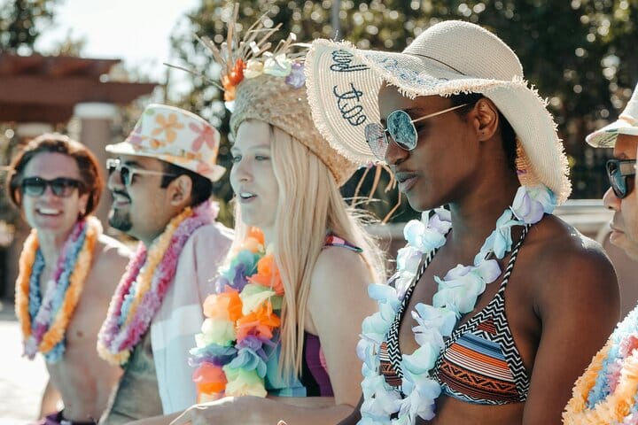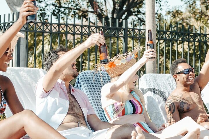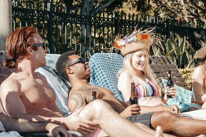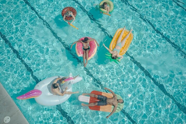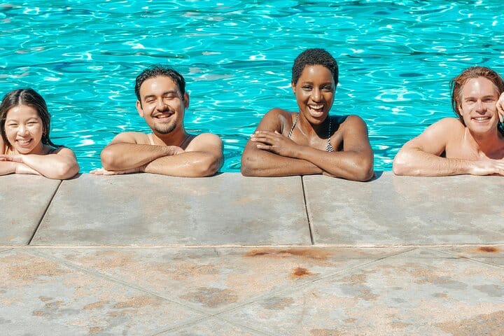 Amenities: Fresh pool towels, shaded lounge areas, and restroom access.